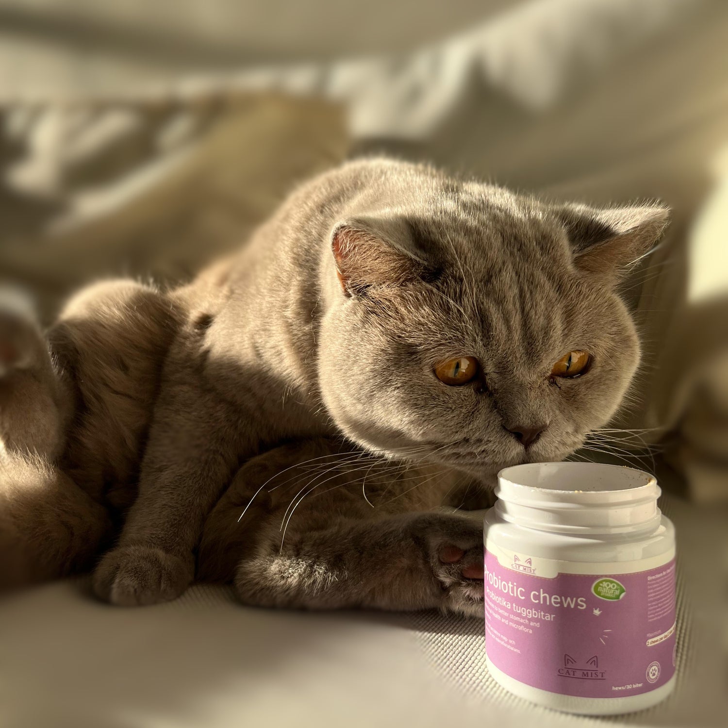 A healthy gut boosts the immune system, improves energy levels, coat and even mood! Catmist Probiotics helps support your cat's health from the inside out